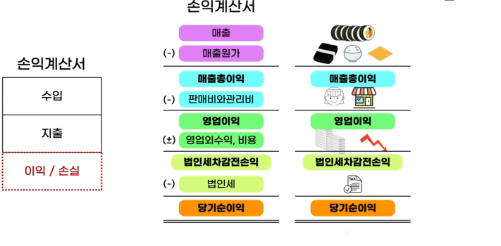 손익계산서는 일정 기간 동안의 기업 경영 성과를 보여주는 표로, 쉽게 말해 "얼마 벌고, 얼마 썼는지"를 알려주는 문서입니다. 예를 들어 김밥집을 운영한다고 가정해볼까요? 한 줄에 1,500원짜리 김밥을 하루에 100줄 판다면 매출액은 150,000원이 됩니다. 여기서 김밥 재료비, 알바비, 임대료 등 각종 비용을 빼면 남는 금액이 '순이익'이죠.