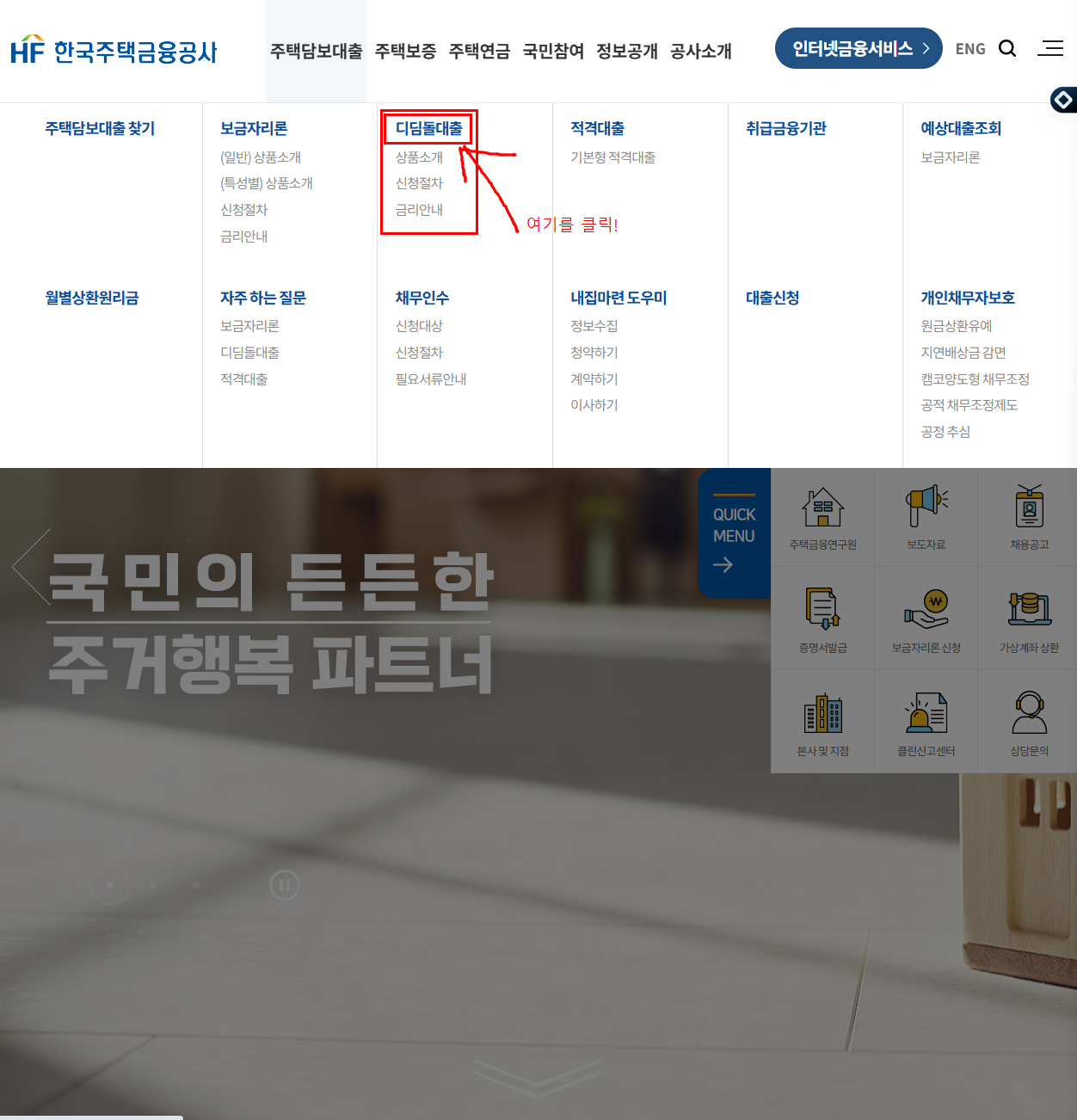 - ‘주택담보대출’ → ‘디딤돌 대출’ 메뉴 선택