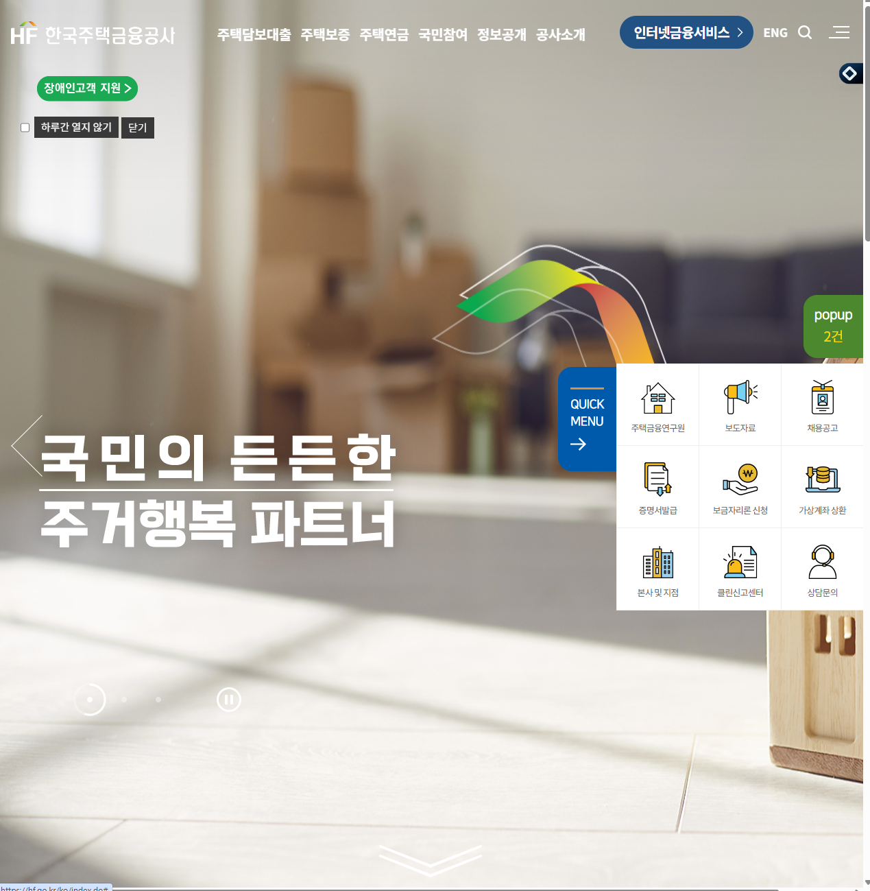 - 한국주택금융공사 홈페이지에 접속합니다.