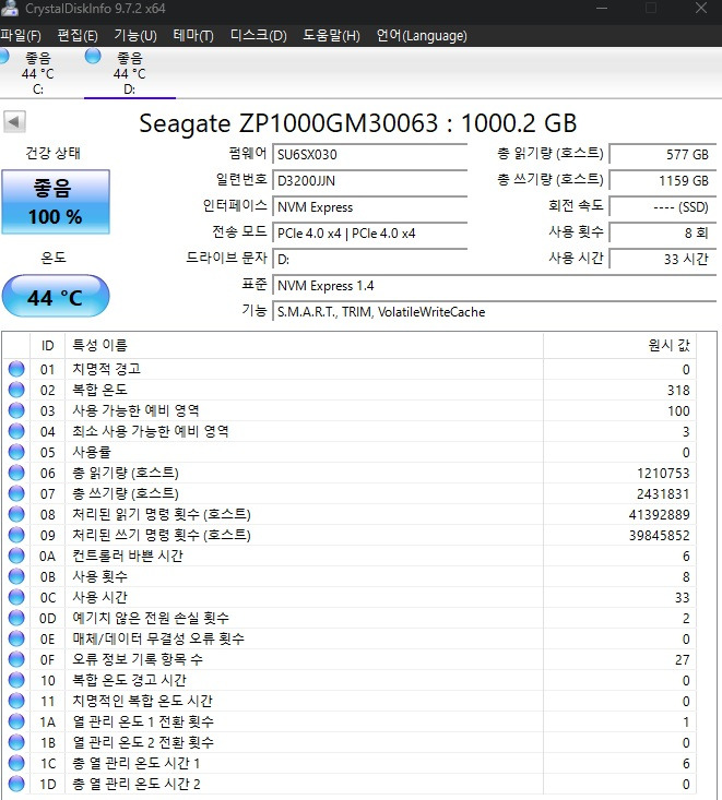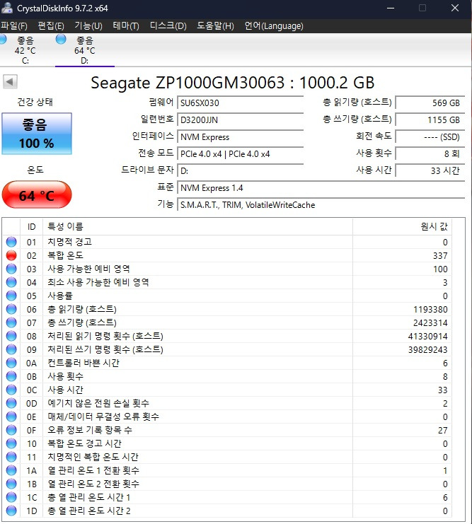 Gen4 SSD에서는 최상위권입니다.