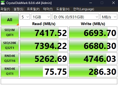 최대 읽기 7,400MB/s