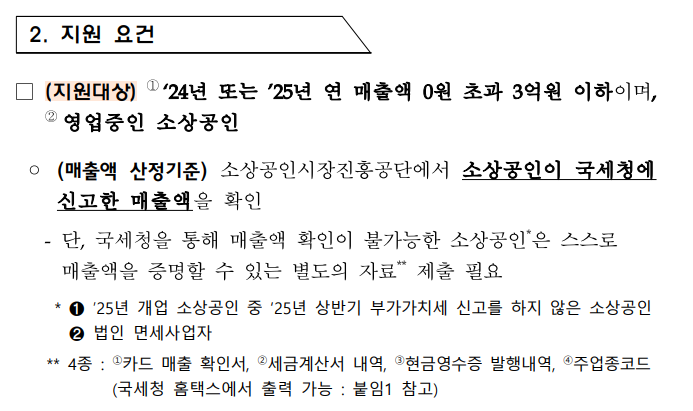 ✅ 지원 대상: 2024 또는 2025년 매출 3억원 이하 소상공인