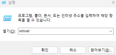 WIN 키 + R 을 이용해 창을 열어주고 winver를 열기 창에다가 작성합니다.