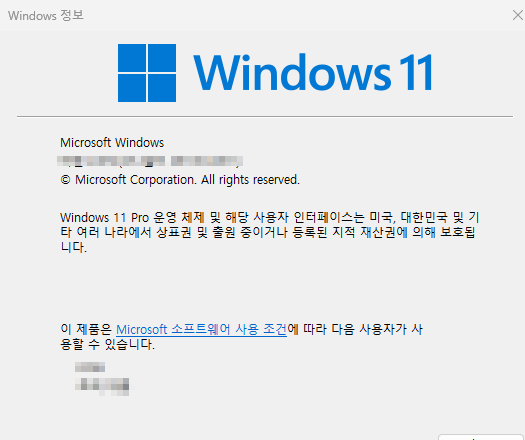 다음과 같이 윈도우의 현 버전과 OS빌드에 대해 알 수 있습니다.