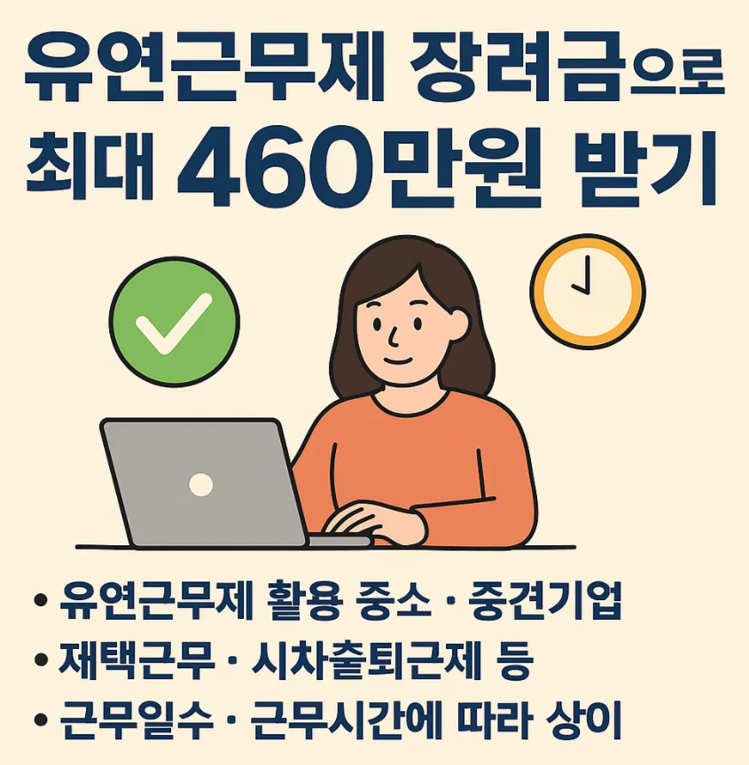 이런 현실 속에서 정부가 적극적으로 밀어주는 제도가 바로 유연근무제 장려금이에요.