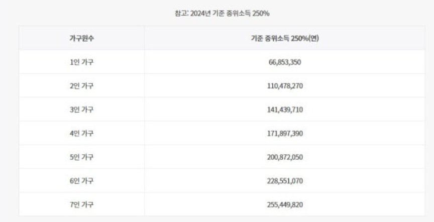 가구 소득의 경우, 가구원 수에 따라 기준 중위소득의 250% 이하에 해당해야 하고, 가구원은 청년 본인과 본인의 주민등록표에 등재된 배우자, 부모, 자녀, 형제·자매(미성년자)를 포함합니다.