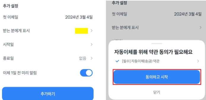 - 이체 주기와 금액은 너무 무리하지 않도록 현실적인 수준으로 설정해야 지속 가능합니다.