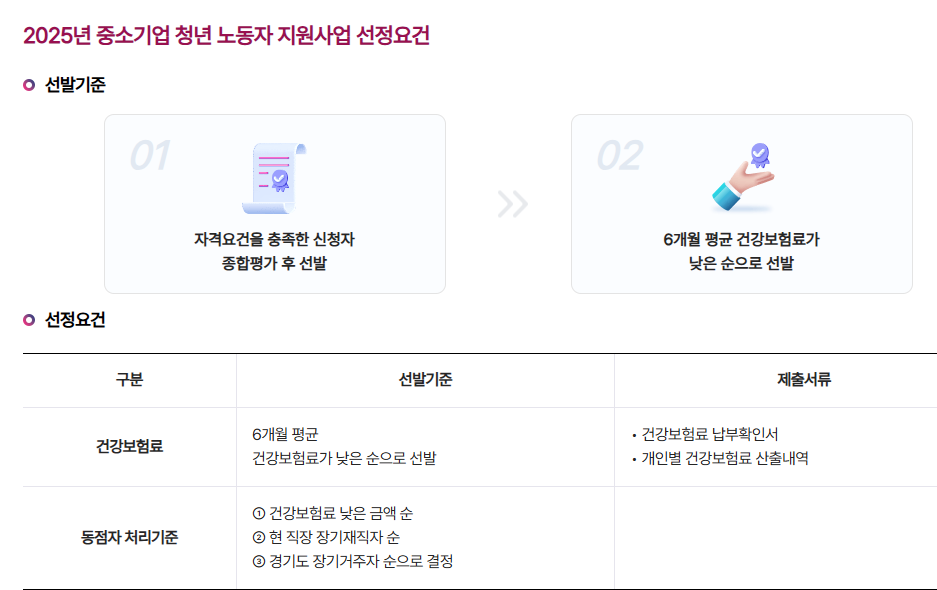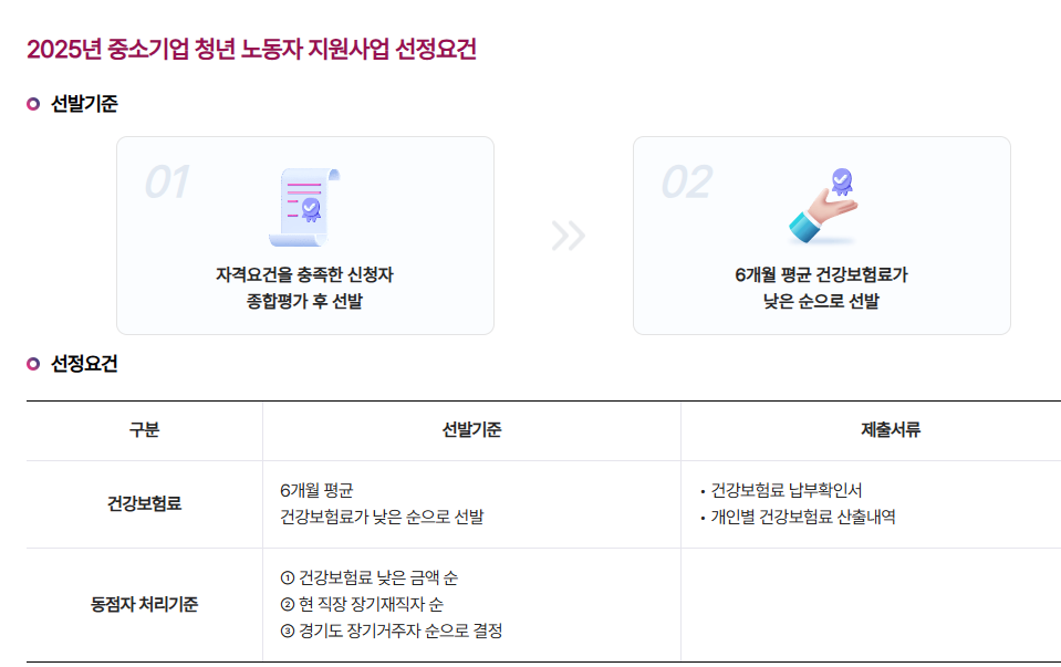 자격요건을 충족한 신청자 중 건강보험료 납부금액이 낮은 순으로 선발</b되며, 동점자가 발생할 경우 다음과 같은 기준이 적용됩니다: