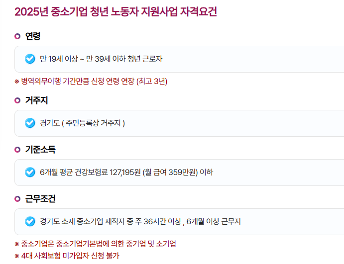 경기도 소재 중소기업에서 주 36시간 이상, 6개월 이상 근무 중인 근로자여야 합니다.