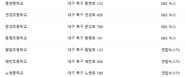 산불로 인해 거주지가 위험해진 주민들을 위해 대구시는 즉시 임시 대피소를 마련했습니다. 현재 운영 중인 대피소는 다음과 같습니다.