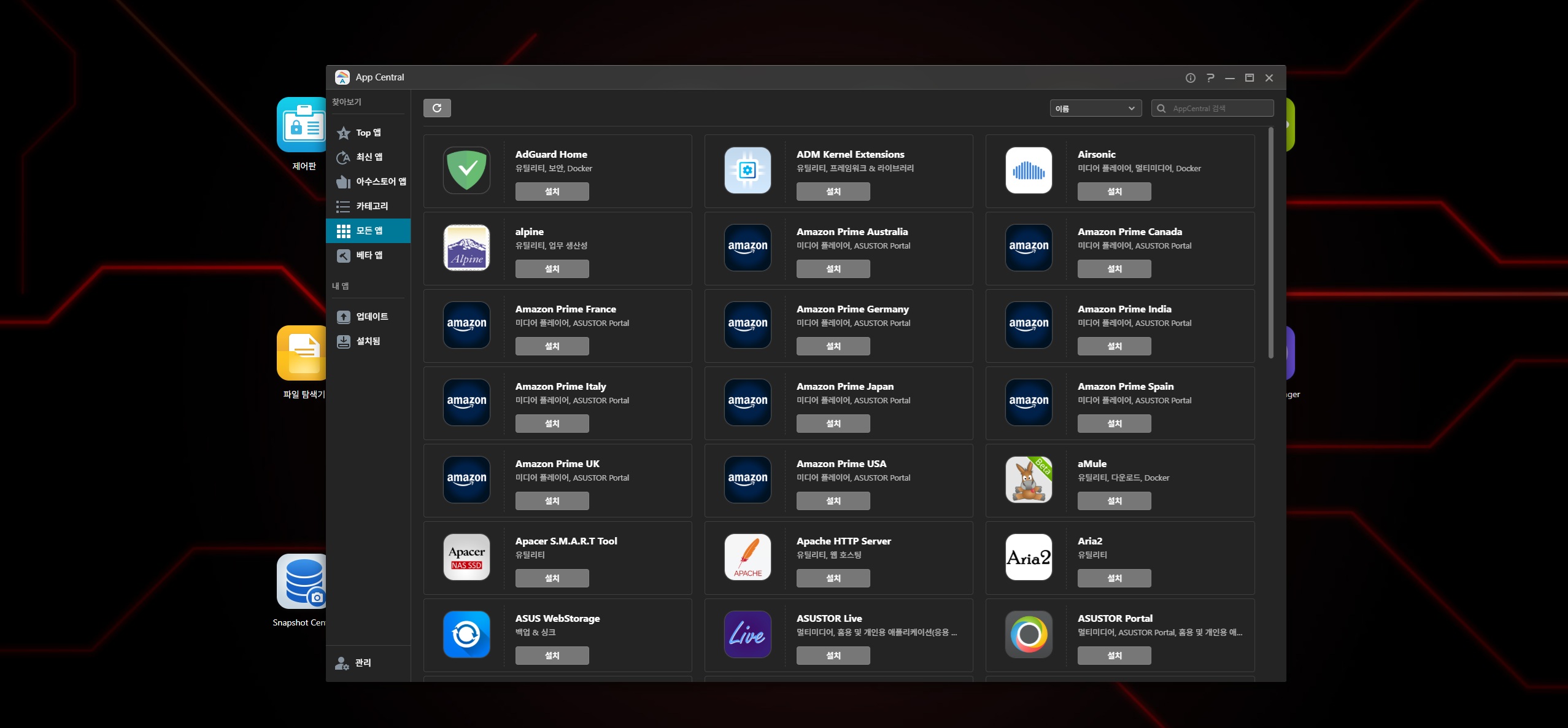자체적인 ASUSTOR의 앱스토어에는 300개에 가까운 앱들이 있어서