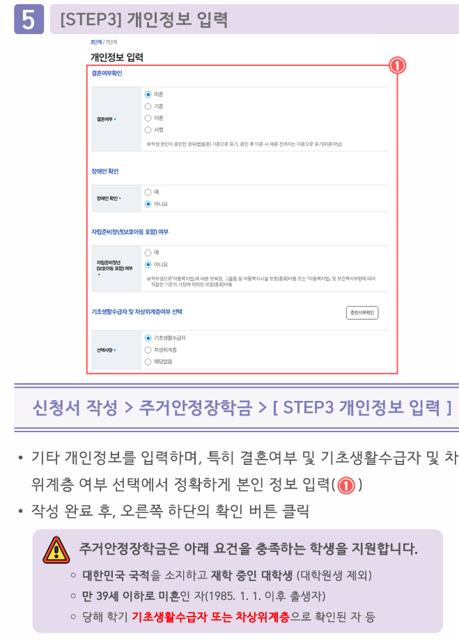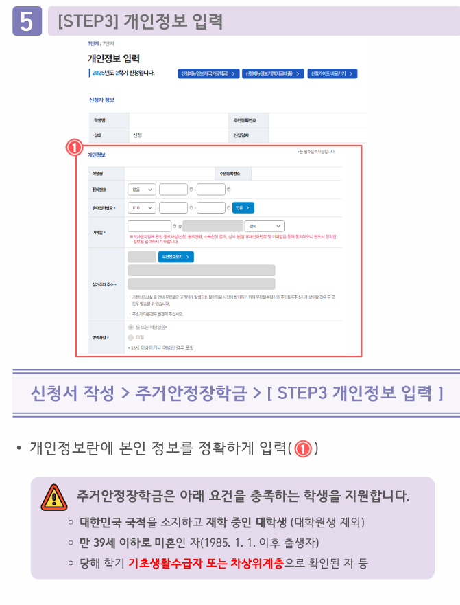 - 기숙사 외 주거지(자취, 하숙, 고시원 등)에 실거주 중인 학생