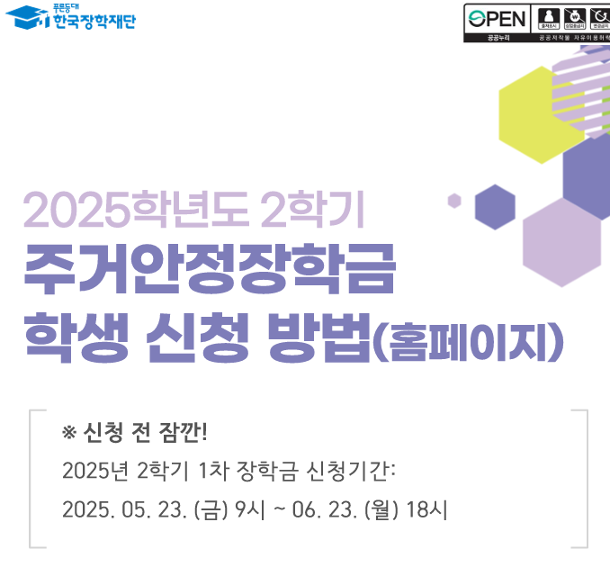 원거리 통학생이라면, 지금 바로 2025년 6월 23일(월) 18시까지 한국장학재단에 접속하여 주거안정장학금을 신청하세요! 월 최대 20만원씩 5개월 지원, 총 100만 원까지 수령 가능한 기회입니다. 소득 조건 없이 누구나 신청 가능하니, 혜택 놓치지 마세요!