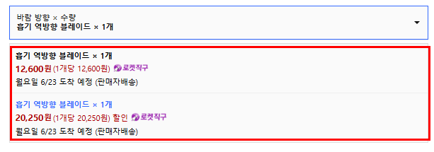 근데 좀 신기한건 쿠팡에 구매 페이지의 상품 선택 창을 열면 다음과 같은 모습을 볼 수 있는데요