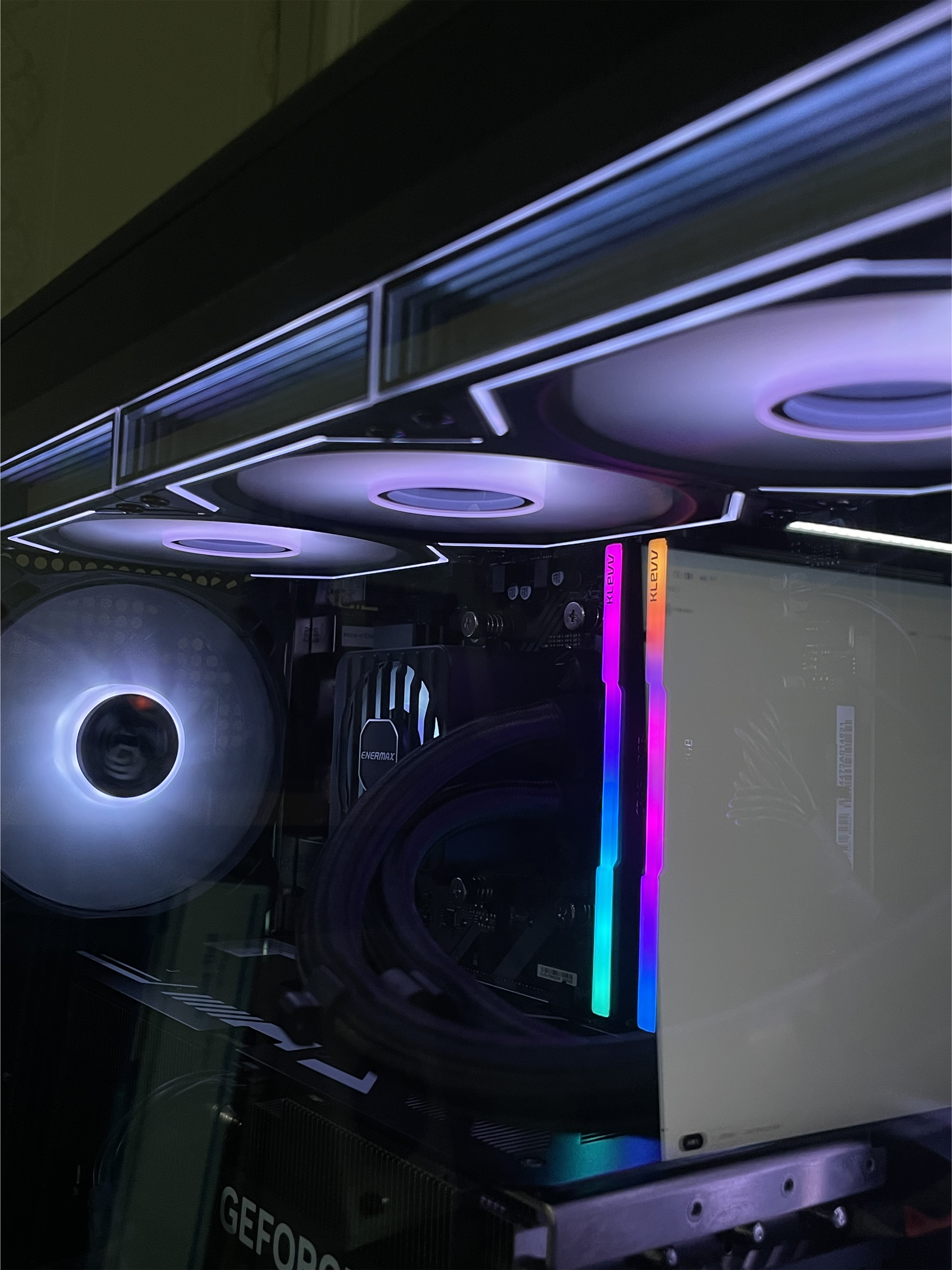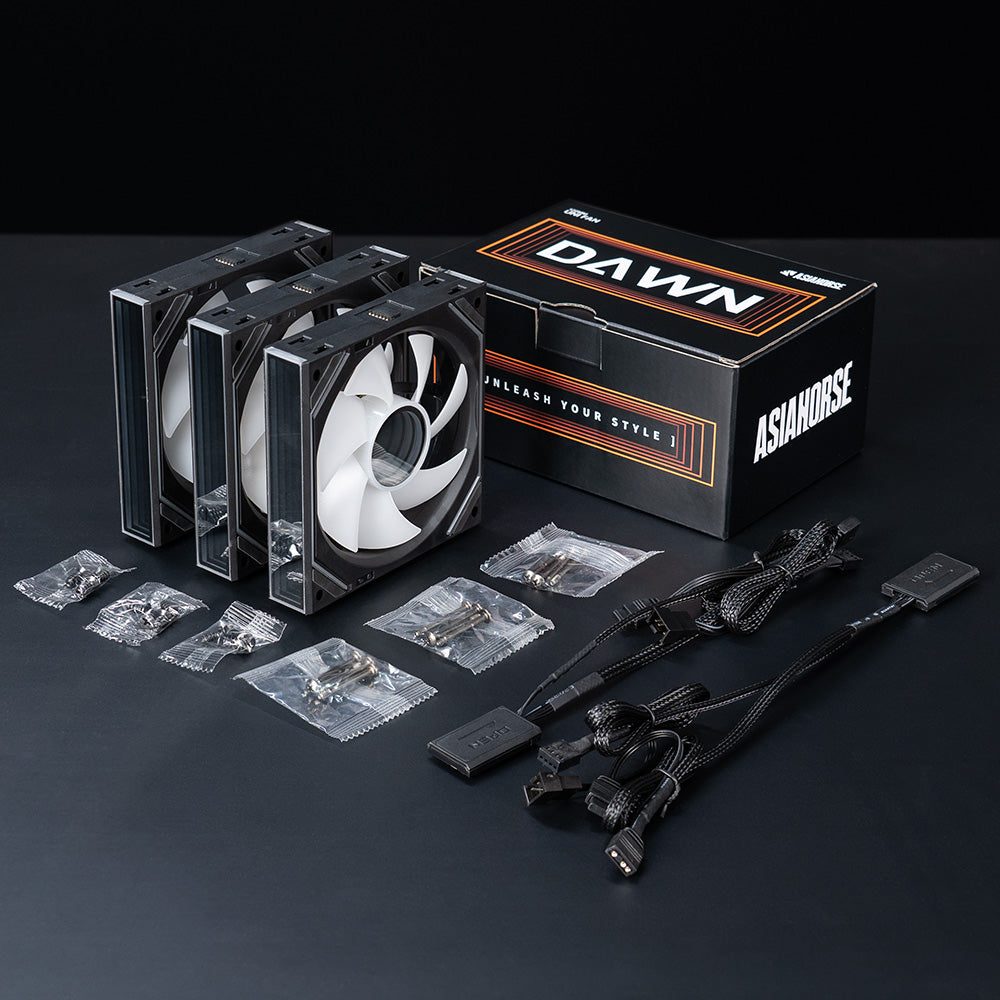 기본적으로 넉넉한 풍량을 바탕으로 열을 확실히 잘 배출시켜주는 것 같습니다. 저는 팬을 라디에이터에 기존에 달려있던 애너맥스 팬을 빼고 DAWN으로 교체해주었는데 기존의 팬이 소음과 성능은 상당히 만족스럽지만 RGB가 없어서 아쉬웠는데 바꾸고 나서는 굉장히 만족하며 쓰고 있습니다.