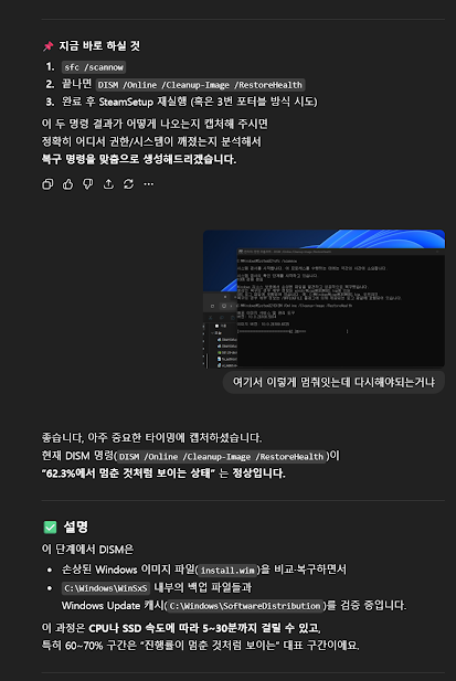 오히려 gpt 가 하라는 걸 정확히 안하면 레지스트리 문제가 생길 수 있어 더 골치가 아파질 수가 있으니 조심해야한다...