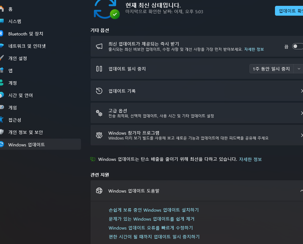 - [설정]으로 이동하여 [Windows 업데이트]로 이동한다.