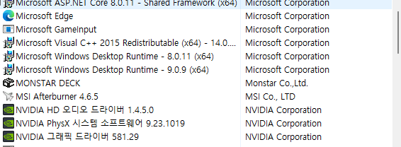 다음은 VS C++를 삭제하고 다시 설치해보거나 본인이 쓰는 제조사의 그래픽카드 드라이버를 다시 삭제하고 깔아보는 방법이다.